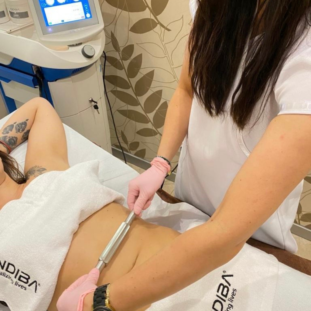 Poprzez stymulację głowicą Indiby, fale rozbijają tkankę tłuszczową, ujędrniają i stymulują nawet głęboko ukryte tkanki. Dzięki temu tłuszcz metabolizuje się, skóra staje się napięta a Ty szybko gubisz centymetry.